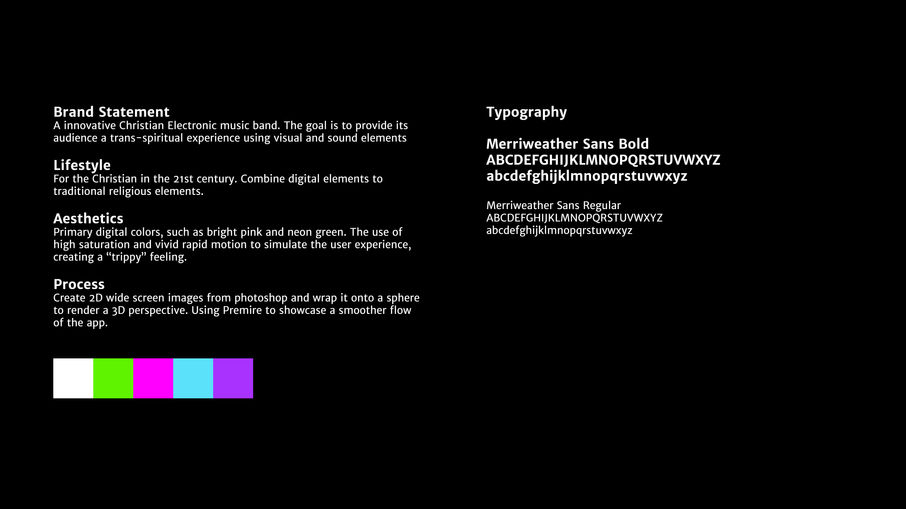SHEPHERD is an virtual reality app I designed for a music band Shepherd, which plays electronic Christian music. The purpose of the music app is to provide its user an complete immersive environment to experience the music. By dominating both the visual and auditory senses of the users, I hope to create or enhance their spiritual experience with the music. Photoshop and Premiere are used in this project.